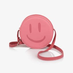 This fun black faux leather bag for girls by Molo has a bright yellow happy face on the front and a contrasting purple sad face on the back. It has a small internal compartment with a zipped slip pocket, ideal for carrying little essentials. The adjustable shoulder strap can be worn on the shoulder or across the body.