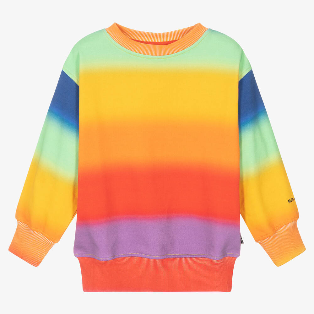 Patterned with all the colours of the rainbow, this red and yellow Molo sweatshirt for boys and girls injects happy vibes into casual days. It has a casual crew neckline and ribbed trims for everyday comfort. The brand's black logo tab can be found on the side seam in addition to the 'Molo since 2003' logo printed on the chest to celebrate the founding year.