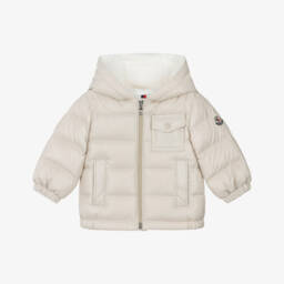 Очаровательная бежевая куртка-пуховик с капюшоном для малышей от Moncler Enfant. Создана для тепла и уюта, эта модель на молнии роскошно утеплена пухом. В капюшоне мягкая подкладка из плюшевого флиса, а карманы отделаны флисом. Легендарная нашивка с логотипом из фетра добавляет изысканности, а ушки медвежонка придают милый вид.