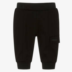 Little boys navy blue joggers by Moncler Enfant. Made in silky lightweight nylon, they have a ribbed navy blue and white elasticated waistband and matching ankle cuffs. They are lined in grey cotton jersey for comfort and have front pockets and the brand's signature rubber logo on the back.