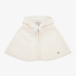 Stylish and cosy, this navy blue cape for girls is by luxury brand, Moncler Enfant. It is made in soft brushed wool with a silky, down-padded hood and collar and branded popper fastenings on the neck. The brand's iconic felt logo badge is stitched on one side for a signature designer finishing touch.