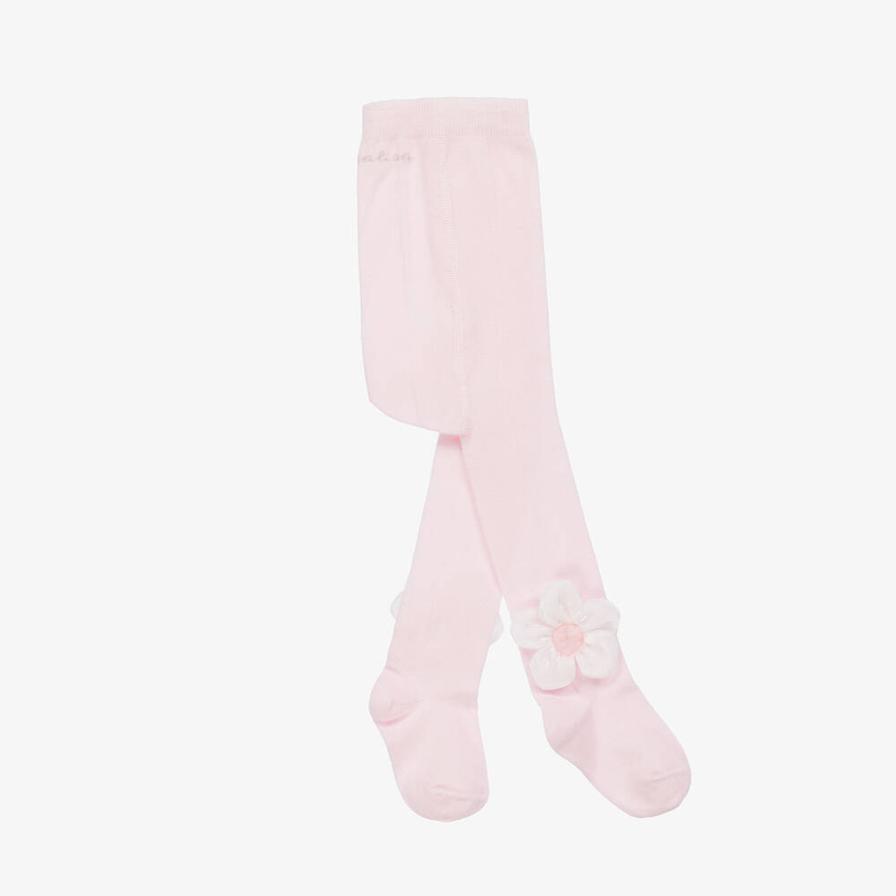 Очень красивые розовые колготки для малышек от Monnalisa. Изготовлены из мягкого хлопкового трикотажа, украшены милыми блестящими белыми аппликациями ромашек на щиколотках для забавного акцента. Эластичный пояс обеспечивает комфортную посадку.