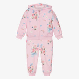 Girls Pink Rose Print Cotton Tracksuit