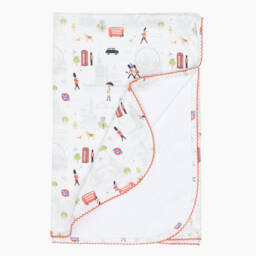 Очаровательное мягкое бело-синее одеяло из трикотажа для малышей от My Little Pie из органического хлопка супима. Это двухслойное одеяло украшено пастельными рисунками скамеек, каруселей и воздушных шаров на лицевой стороне и однотонное белое с обратной стороны, с нежной голубой окантовкой для милого завершения.