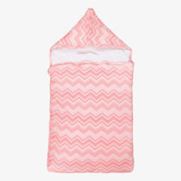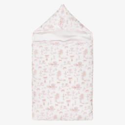 Cosy nest for baby boys and girls by My Little Pie, featuring a charming merry-go-round print in soft pastel shades. Made in soft organic Supima cotton jersey for a gentle feel against delicate skin, it is lightly padded for warmth and comfort and trimmed with delicate picot embroidery. It fastens easily with poppers along the sides and on the hood, allowing it to be opened and laid flat, providing a comfortable surface for baby to lie on.