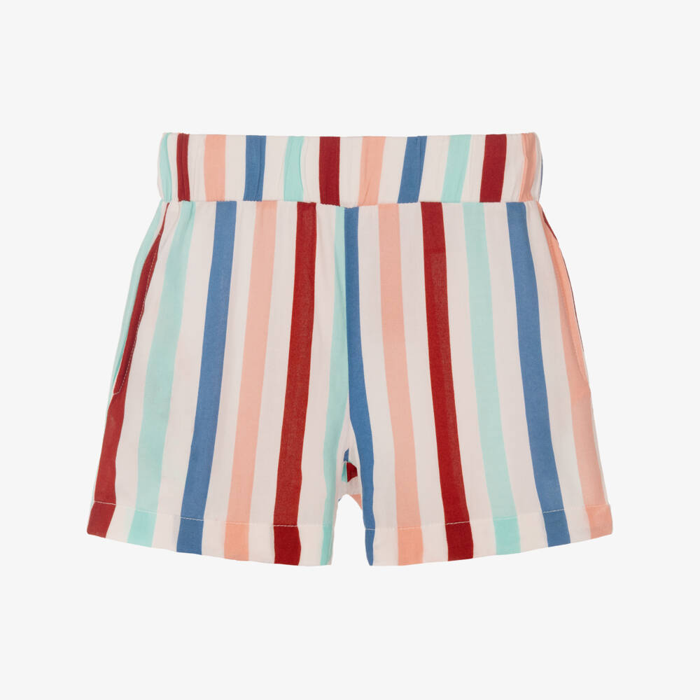 Белые полосатые шорты для мальчиков от NAME IT из очень мягкой и легкой ткани. Яркие цветные полосы привлекают внимание, а регулируемый пояс обеспечивает комфортную посадку.