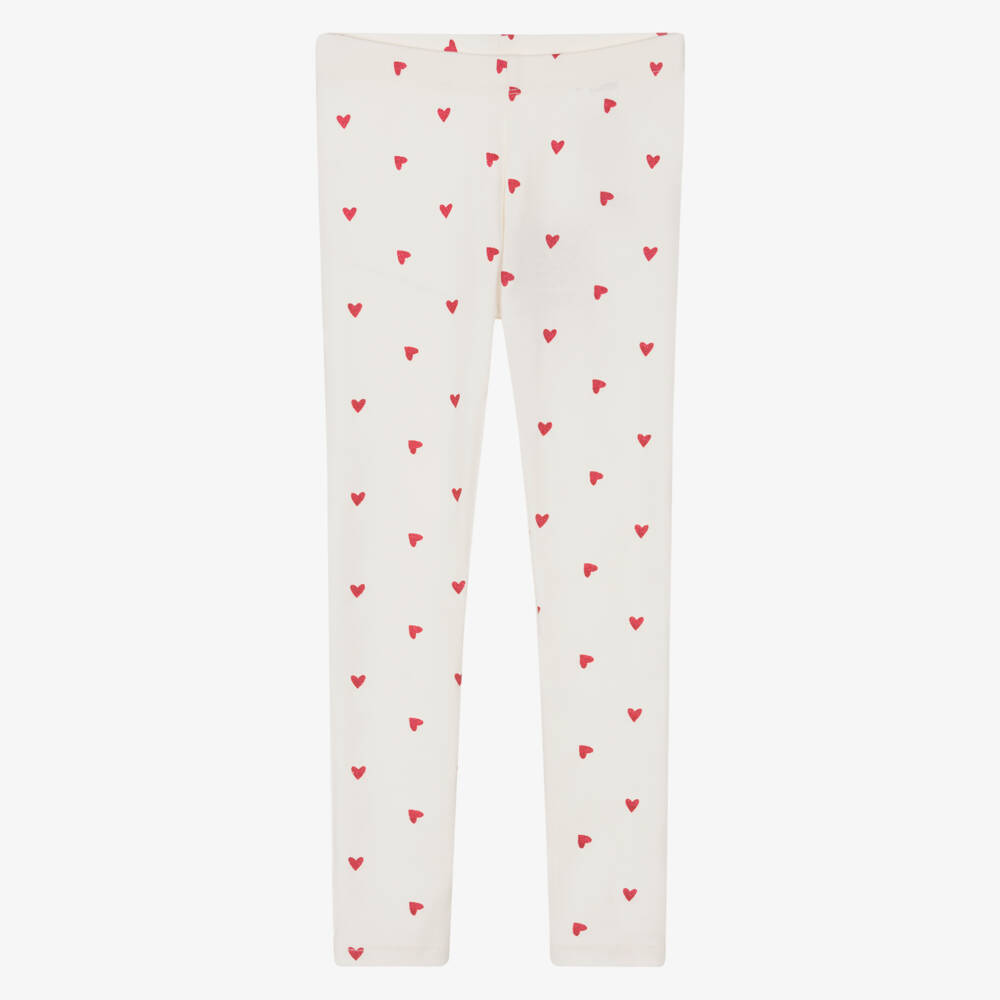 Girls Ivory Glittery Heart Print Cotton Leggings