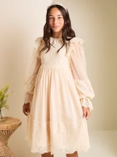 ЭксклюзивноJunonaПлатье розовое из тюля с вышивкой цветов и бабочек для девочек