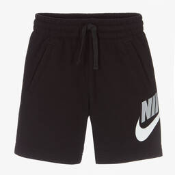Black cotton jersey shorts for boys by Nike. Easy to wear, they have an elasticated waist which can be adjusted with the drawstring for a better fit and two front pockets. The instantly recognisable Swoosh logo is printed in grey and white on the side.