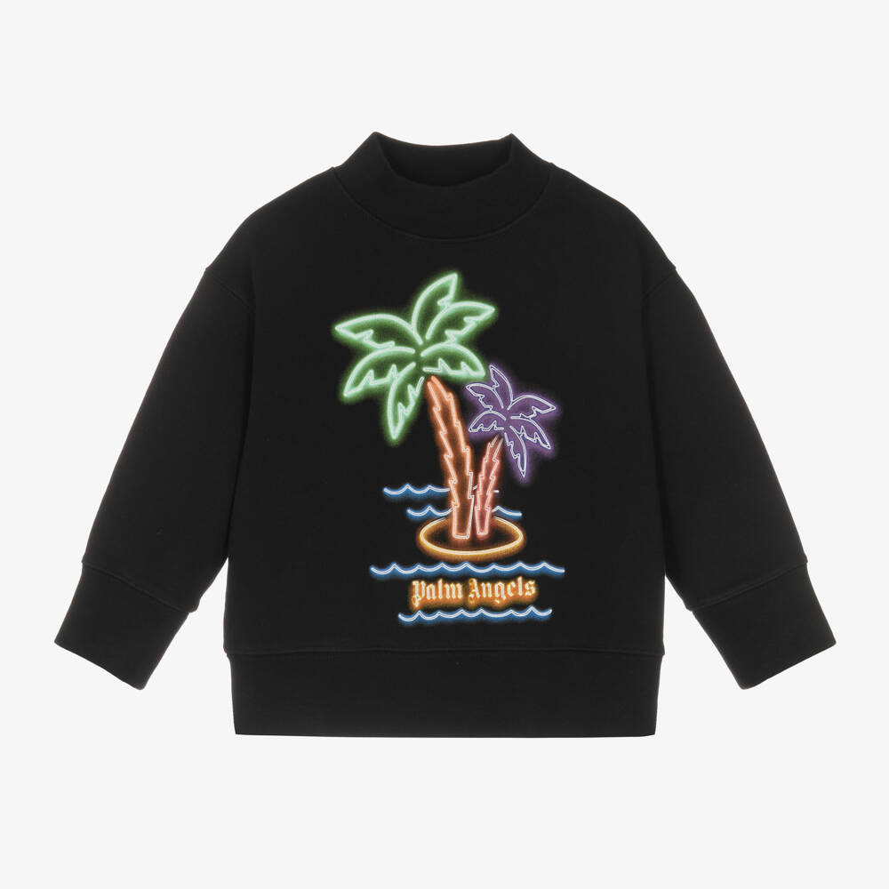 Palm Angels designs this black organic cotton sweatshirt for boys and girls. In a relaxed fit with dropped shoulders, this long-sleeved layer is made from gentle-on-the-skin jersey. A vibrantly coloured neon light-effect palm tree and logo graphic is printed on the front for a cool streetwear look.