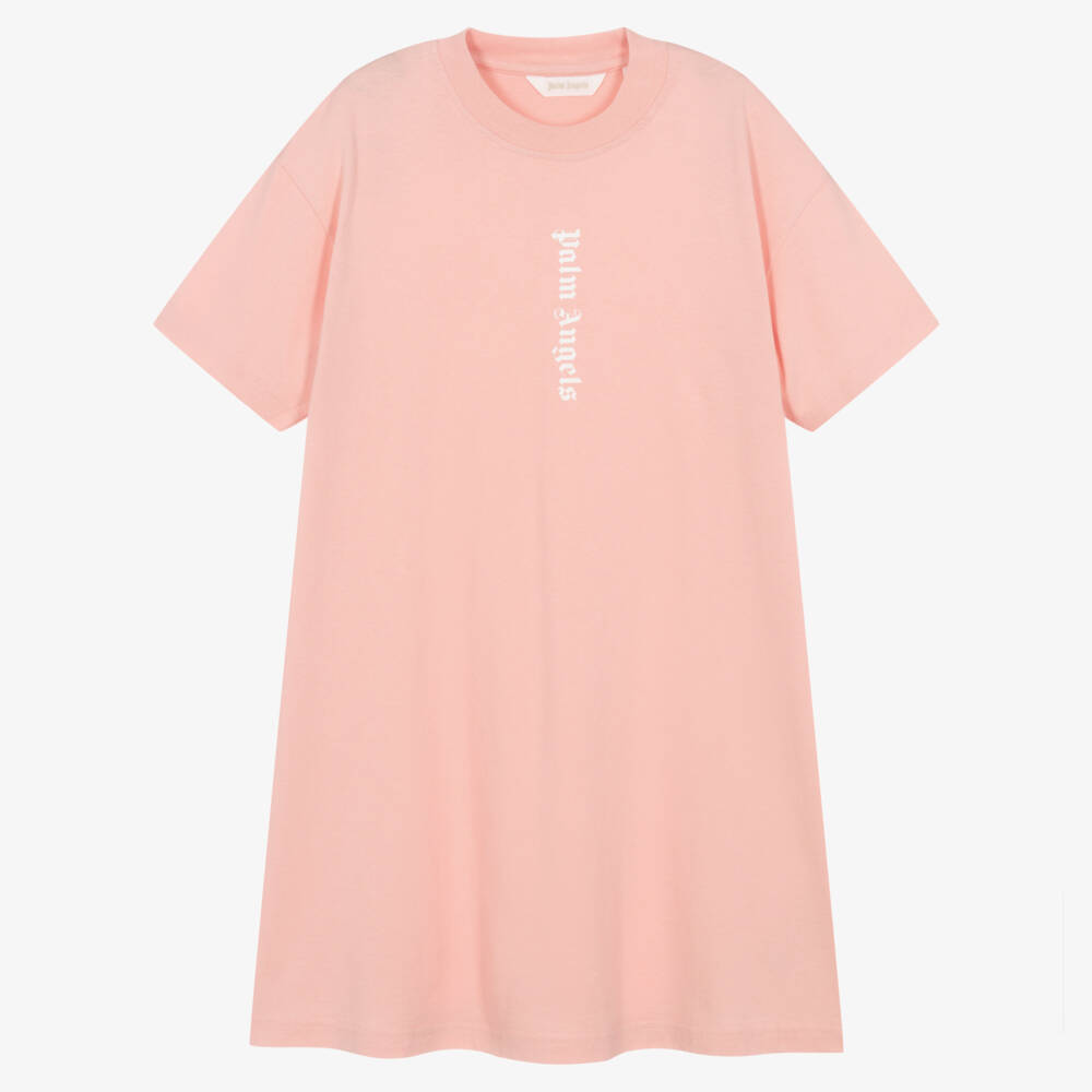 Cool, casual and relaxed, this pink organic cotton T-shirt dress for teen girls is unmistakably by Italian brand Palm Angels. It has the designer's small vertical white logo printed on the front and a large, rubberised logo on the back. Ideal for laid-back days, it is made in comfortable jersey, flared in style and with dropped shoulders.