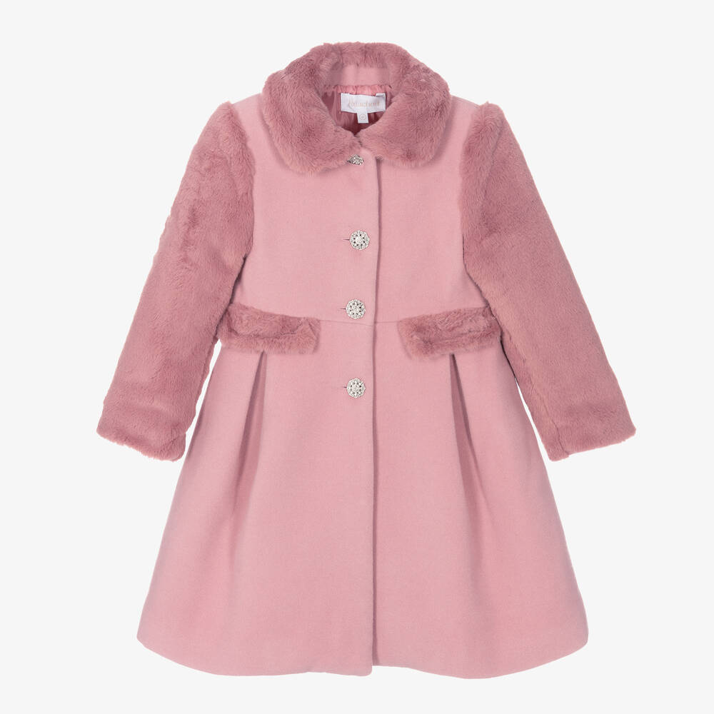 Girls Pink Felted & Faux Fur Coat