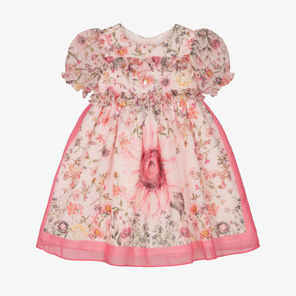 Girls Pink Floral Chiffon Dress