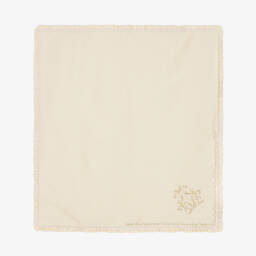 This beige shawl for baby boys and girls by PAZ Rodríguez, offers a touch of elegance and comfort. This versatile piece features a delicate knit pattern with charming little polka dot accents and a scalloped edge.