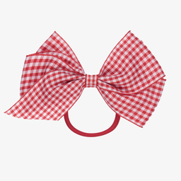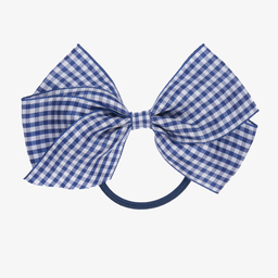 Girls hair elastic with a large navy blue and white gingham bow, handmade by Peach Ribbons.