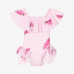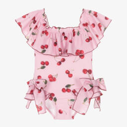 A charming blue and white striped swimsuit for little girls by Phi Clothing. Made in a soft cotton blend, this delightful one-piece piece features pretty ruffles and a large bow at the back, and its stretchy shirred design ensures a comfortable and flexible fit.
