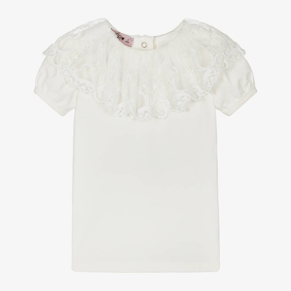 Girls Ivory Cotton & Lace T-Shirt