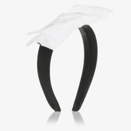 Pretty ivory tie-up headband for girls by Phi Clothing. Made in beautifully soft cotton velvet, it has a stretchy elasticated panel on the back for a cute and comfortable fit.