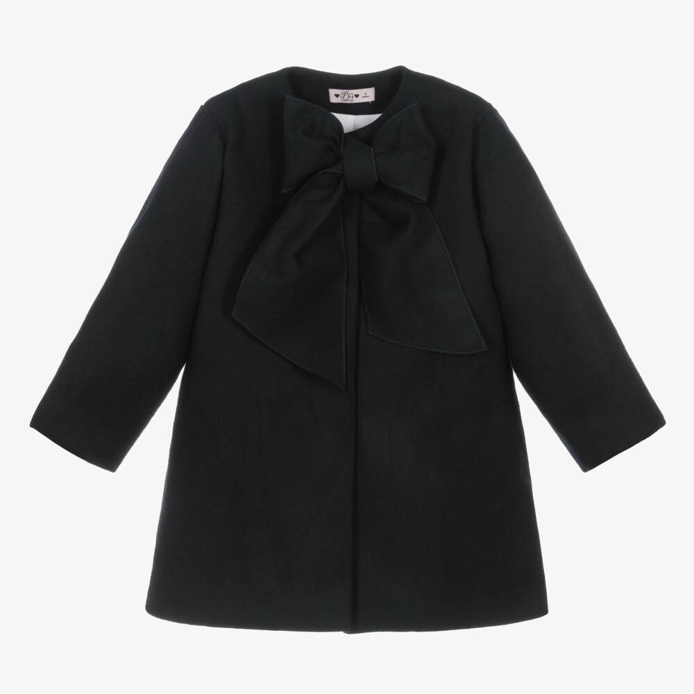 In a lovely shade of blue, this elegant coat for girls is by Portuguese brand Phi Clothing. Warm and cosy, it is made in a soft wool-feel fabric and lined in lightweight voile for comfort. There are fixed ties at the neck, creating a gorgeous oversized bow. The coat fastens with hidden popper fastenings down the front and has concealed side seam pockets.