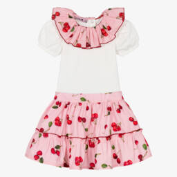 Girls Red Skirt Set with Black Velvet Bows