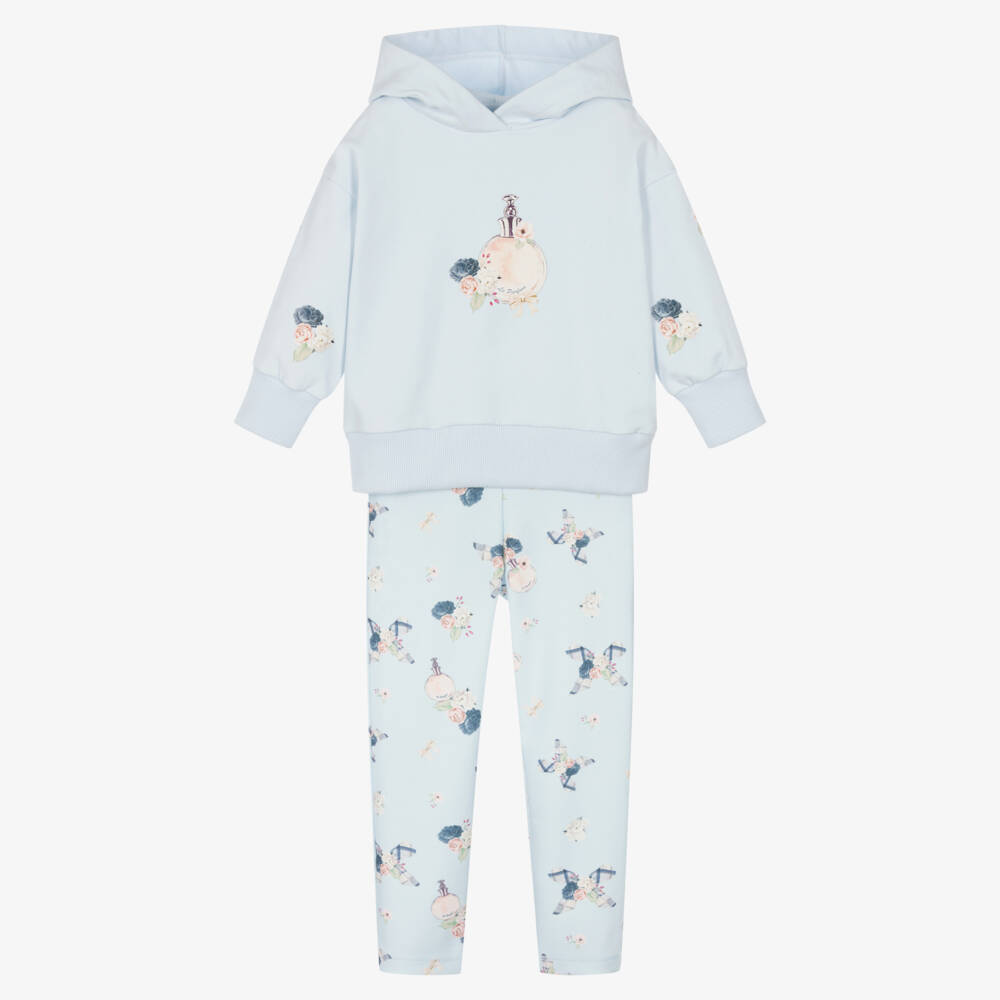 This pale-blue leggings set for little girls by Piccola Speranza is a design exclusive to Childrensalon. The hoodie is made in soft, medium-weight cotton jersey, with a lovely perfume bottle, flower and bow print. Deep ribbed trims ensure a comfortable, cosy fit. Soft and stretchy, the matching patterned leggings have an elasticated waist for comfort on tiny tummies.