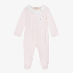 Lovely pale blue babygrow for little boys by Pureté Du... Bébé, made in luxurious cotton-blend velour. Embroidered with a cute rocking horse motif on the chest, this babysuit is soft and gentle against the skin. There are popper fastenings on the back and between the legs to help with easy dressing. A sweet mother-of-pearl logo charm can be seen on the front.