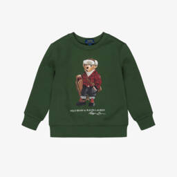 Повседневный и удобный кремовый свитшот для малышей от Ralph Lauren из мягкой хлопковой смеси с теплой флисовой подкладкой. Легендарный мотив Polo Bear бренда напечатан спереди, одетый в стильный повседневный наряд. Зеленые отделки добавляют яркий акцент, а кнопки на одном плече облегчают процесс одевания.