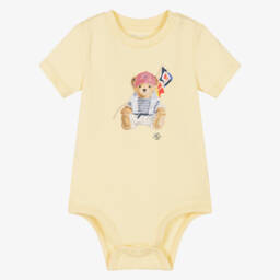 Боди белое из хлопкового джерси с мишкой Поло для малышек