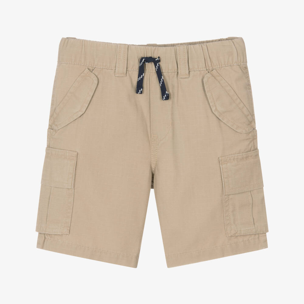 Повседневные бежевые шорты для мальчиков от Ralph Lauren из мягкого хлопка. Они оснащены несколькими карманами на кнопках, включая два карго кармана по бокам. Пояс на резинке для комфорта и легкости надевания, со шнурком для регулировки посадки. Синий вышитый логотип пони сзади добавляет фирменный штрих.