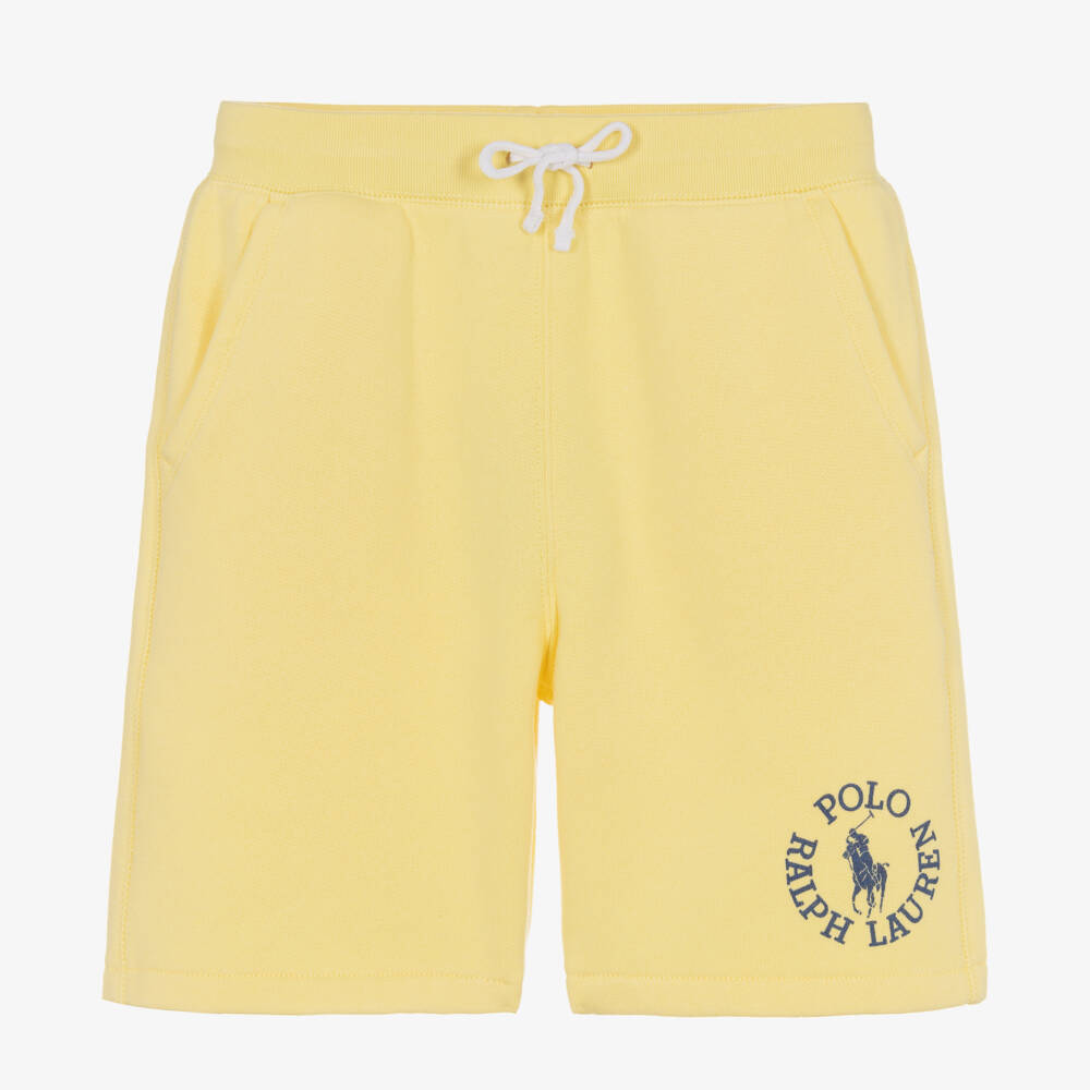 These pale yellow cotton-mix shorts for boys by Ralph Lauren are made in soft, stretchy and medium-weight jersey. In a muted colour great for warmer weather, they have the label's dark blue Big Pony logo print on one leg for instant designer recognition. Three useful pockets and drawstring on the elasticated waist complete the comfortable design.