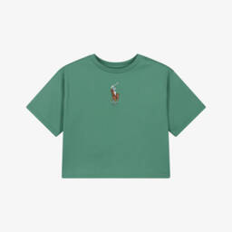 Зеленая футболка для девочек от Ralph Lauren, сочетающая в себе повседневный комфорт и легендарный стиль бренда. Изготовлена из мягкого хлопкового трикотажа, украшена фирменным логотипом Big Pony, вышитым спереди. Свободный крой делает её идеальной как для многослойных, так и самостоятельных образов.