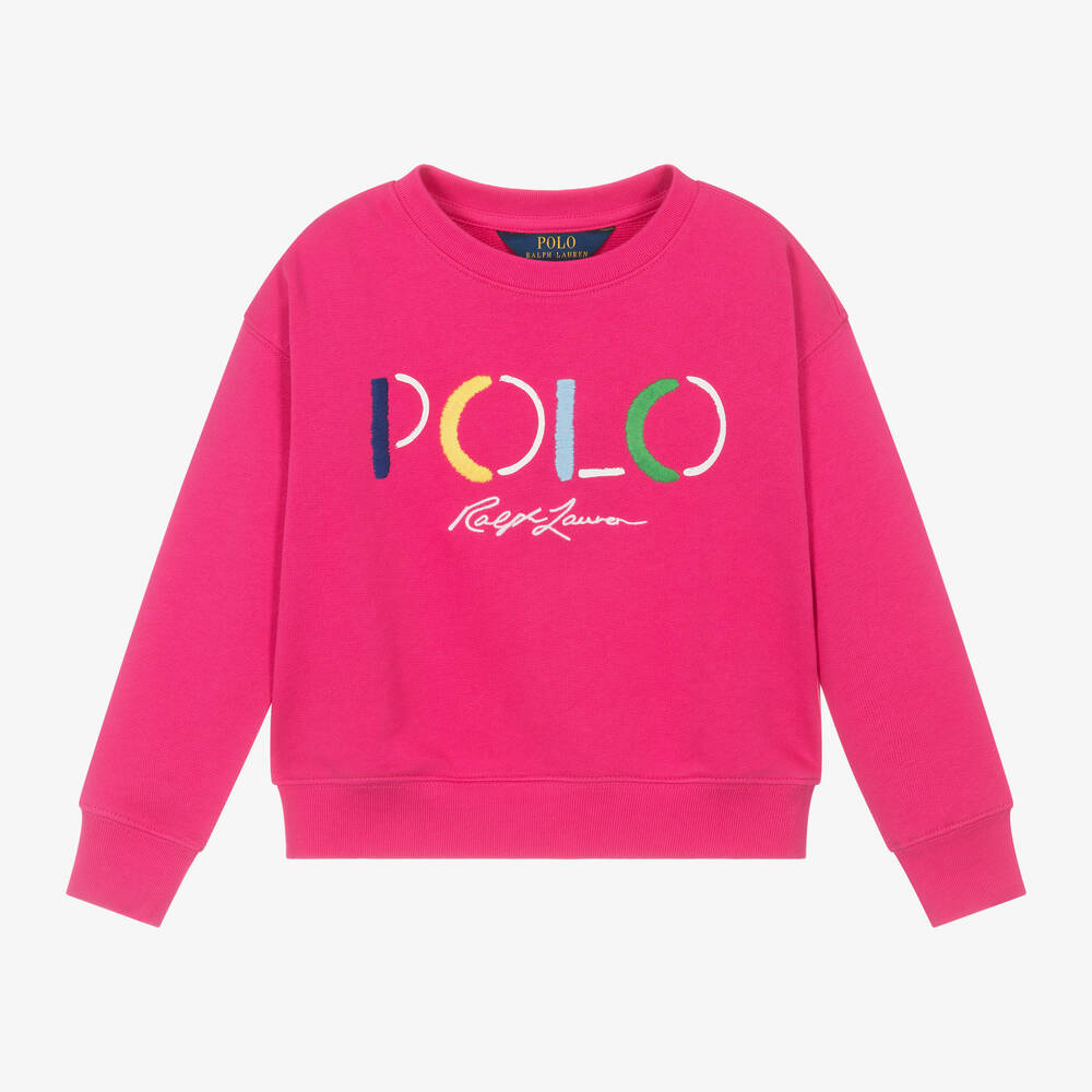 In a gorgeous fuchsia pink shade, this cotton-blend sweatshirt for girls is by American brand, Ralph Lauren. Ideal for casual days, it is made in soft and lightweight sweatshirt jersey with a relaxed fit, dropped-shoulder long sleeves and ribbed trims. An unmistakable designer look, it has a logo design across the front in colourful embroidery and print.