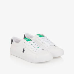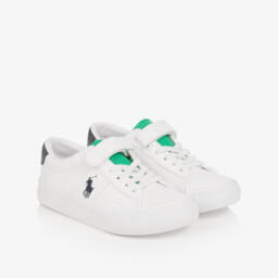 Белые кроссовки для девочек из искусственной кожи от Ralph Lauren с эффектной серебристой вставкой. Легендарный логотип Пони вышит сбоку, а также присутствует на язычке. Удобная застежка на липучке обеспечивает надежную фиксацию, дополнительно есть эластичные шнурки и мягкая стелька для комфорта.