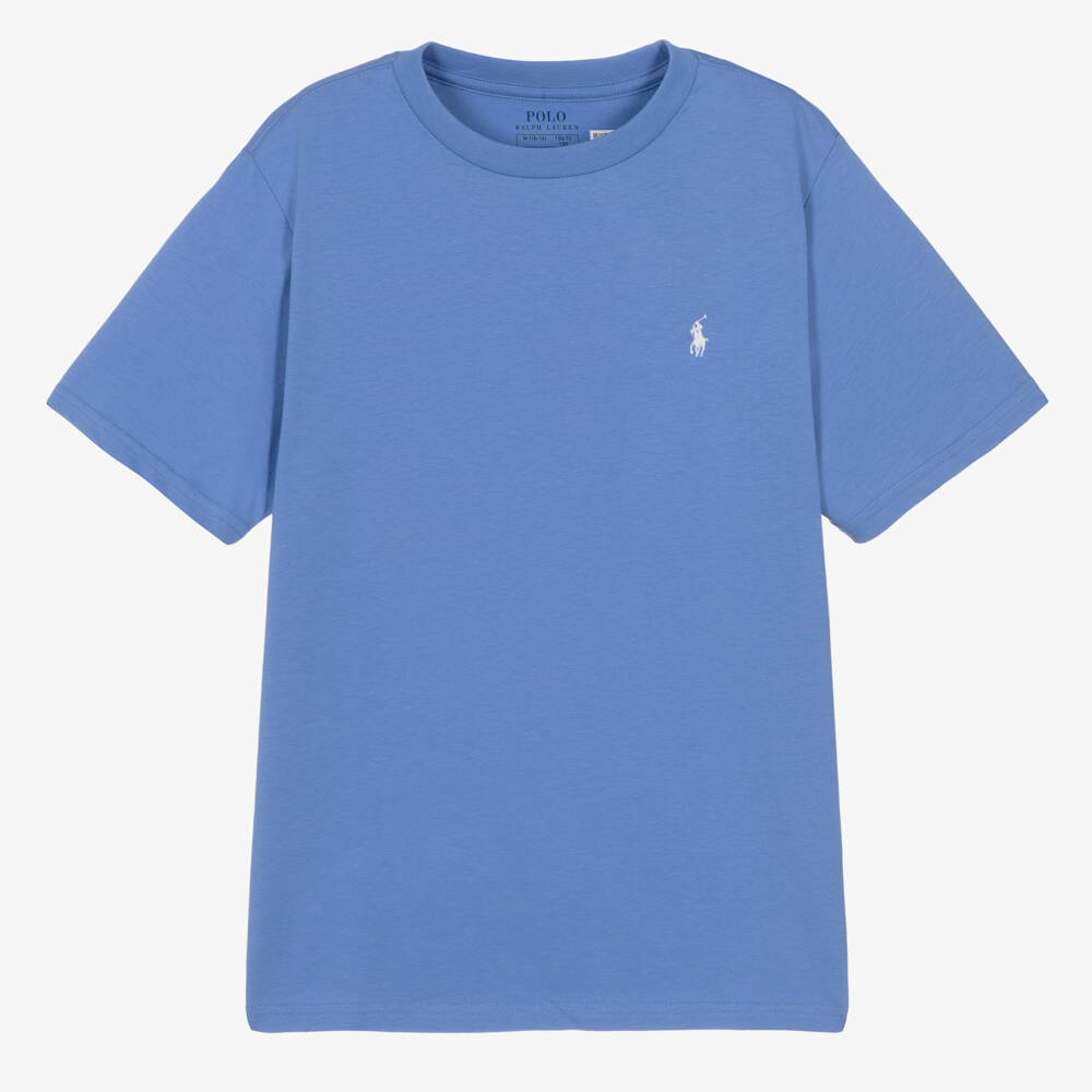 As seen in the main collection, this blue T-shirt for teen boys by Ralph Lauren has the brand's signature pony logo embroidered on the chest in white. Making a bold statement, a white logo can be seen on the back, giving this casual tee a stylish designer finish. Styled with a ribbed crew neck and short sleeves, it is made in comfortable cotton jersey.