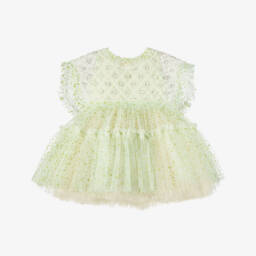 Ideal for parties and special occasions, a gorgeous sage green dress girls by RaspberryPlum. Layers of gathered tulle and ruffle detailing create a striking silhouette and the soft viscose lining ensures comfortable wear.