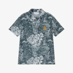 White polo shirt for boys by luxury Italian brand Roberto Cavalli, made in soft cotton jersey. Casual but contemporary, this cool top has the classic button fastenings on the front. It features a blue animal-inspired logo print across the front and a black rubberised RC Monogram on the chest for a statement finish.