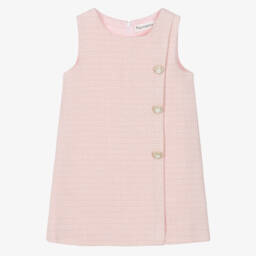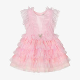 A lovely beige and blue dress for girls by Romano. Made from a mid-weight jacquard fabric, it has a beautiful floral pattern with a layered tulle trim at the hem. Lined in soft cotton for extra comfort, this short-sleeved dress fastens with a concealed zip on the back.