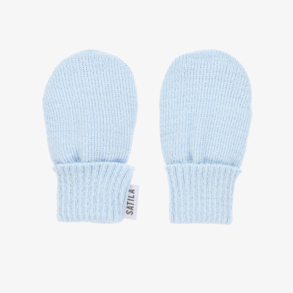 Lovely pale blue mittens for baby boys and girls by Sätila of Sweden. In a soft and cosy knit, they have delicate ribbed fold-up cuffs to keep their little fingers warm.