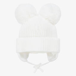 A delightful pale pink winter hat for little girls by Sätila of Sweden. Sweetly styled, it has two cute pom-poms on top, a turned-up brim, and ear flaps with ties that fasten under the chin. Made from a stretchy ribbed knit, it is partially lined in knitted cotton for extra comfort.