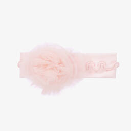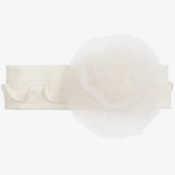 A sweet ivory headband for baby girls by Sofija, made from soft cotton jersey with a pretty tulle rosette on the front.