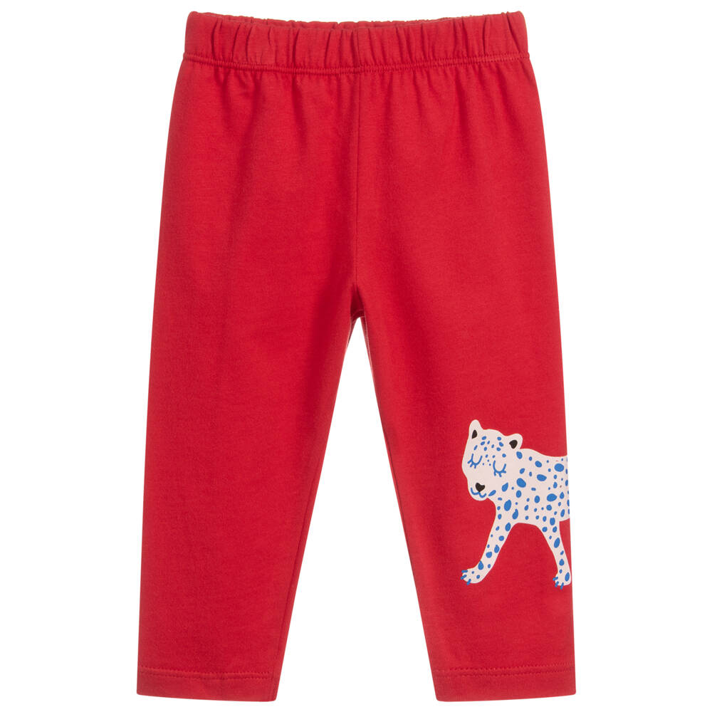 Baby girls red long leggings from Sonia Rykiel Paris, with a blue leopard print and an elasticated waistband.