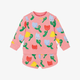 Turquoise blue shorts set for little boys by Stella McCartney Kids, made in soft and comfortable organic cotton jersey. For a fun and playful look, this casual outfit is patterned with friendly green frogs. The sweatshirt has poppers on one shoulder and the shorts have a gently elasticated drawstring waistband.