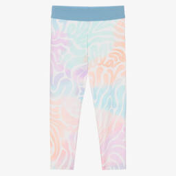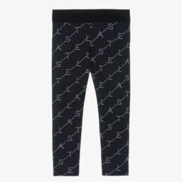 Casual black leggings for girls from Stella McCartney Kids, made in the softest organic cotton jersey. Fun and dynamic, they are patterned in a multicoloured circular logo design. These fun leggings are comfortably finished with an elasticated waistband. The Stella McCartney fit can be quite small so choose a size up if you want room to grow.