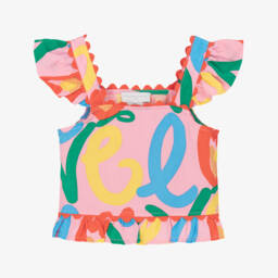 Ideal for dance or sports, a black crop top for girls by Stella McCartney Kids. Made from recycled materials, this stretchy top has a mesh panel at the back and the designer's lip print logo on the front.
