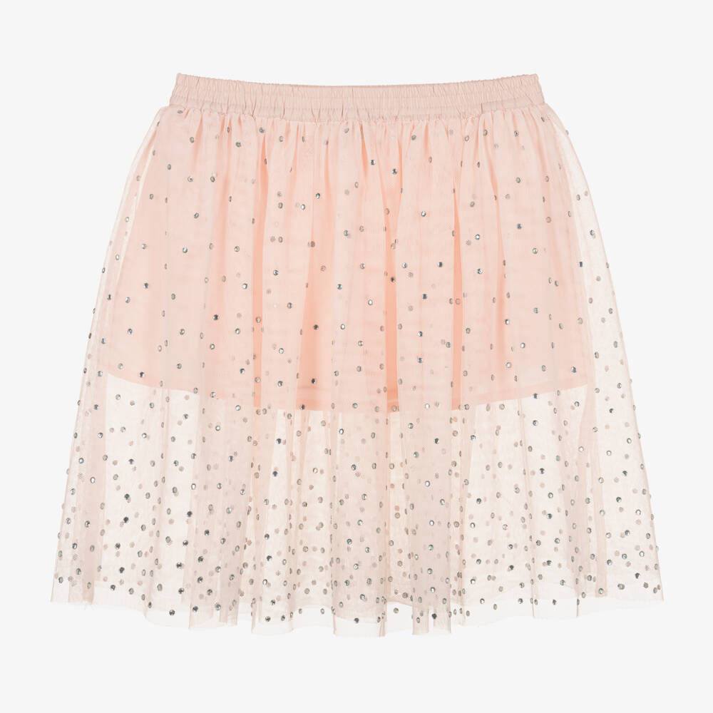 Pretty pink tulle skirt for girls from British brand Stella McCartney Kids. Embellished with diamantés for a touch of sparkle and to catch the eye, this lovely lightweight skirt has a cotton lining for comfort. It easily pulls on with an elasticated waistband and has a loose fit for free movement. The Stella McCartney fit can be quite small so choose a size up if you want room to grow.
