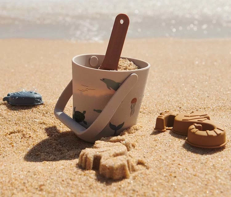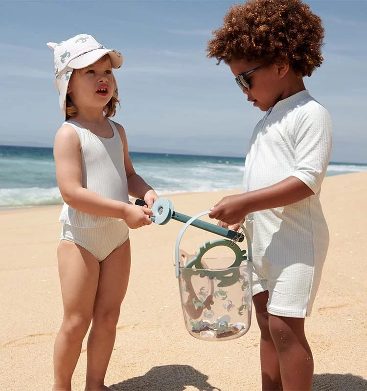 - Make a Mini Pool: Dig a hole close to your beach set-up (your child can help with this), line with a waterproof layer, and fill with seawater for their very own beach pool, complete with water toys from Liewood.