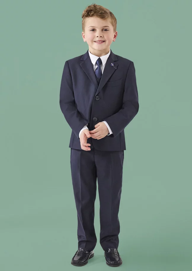 “We love this smart navy blue suit from House of Cavani with Emporio Armani's white poplin shirt. Paired with comfy loafers and a matching tie, he'll look ever so charming for the occasion.”