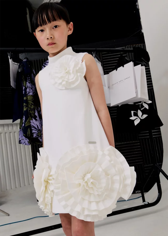 "We began our business offering both girls’ and boys’ clothes and, of course, we designed with our children in mind, offering a mainly jersey collection. We loved developing a range of stylish bomber jackets and cool cut jersey trousers in wicked prints. The collection was smaller and, even though buyers shared our love, it was simply not big enough for them to buy into. [Focusing on girls] also allowed us to express our creativity with a more extravagant fashion approach. Confident girls love to wear our dresses and stand out from the crowd. Hopefully we can reintroduce boys’ clothing again in the future."