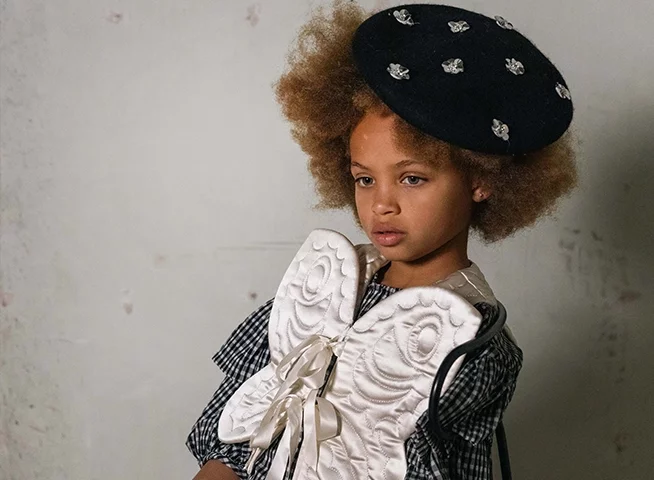 I try to stay away from trends. Our slogan is, “Why be a follower when you can be a pioneer of style?” It reflects my personality, I’ve always stood out from the crowd and done my own thing. It’s important to build the confidence of children so that they feel they can be themselves. I try to do that in all my collections. I used to be a very shy child and my mom dressed me very differently from the other kids. They used to make fun of me but it gave me a lot of confidence to be different from other children. That really stuck with me and that is the impulse I follow in the way I design.