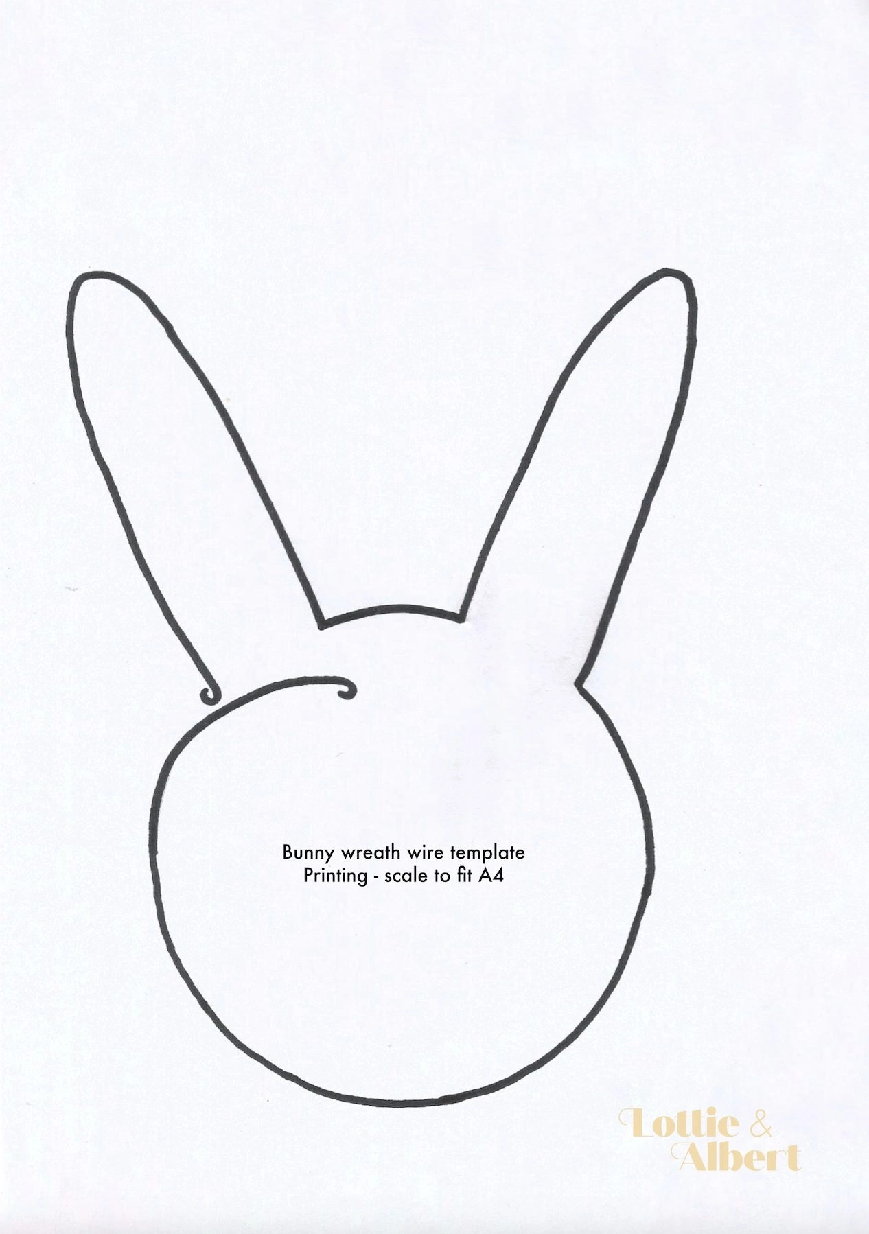 Cut 1 m length of wire and, using the template above, curve it into a bunny head shape. Don’t worry if it looks a bit wobbly at this stage! Curve the end closest to the ear over a little bit, but leave the other end straight.